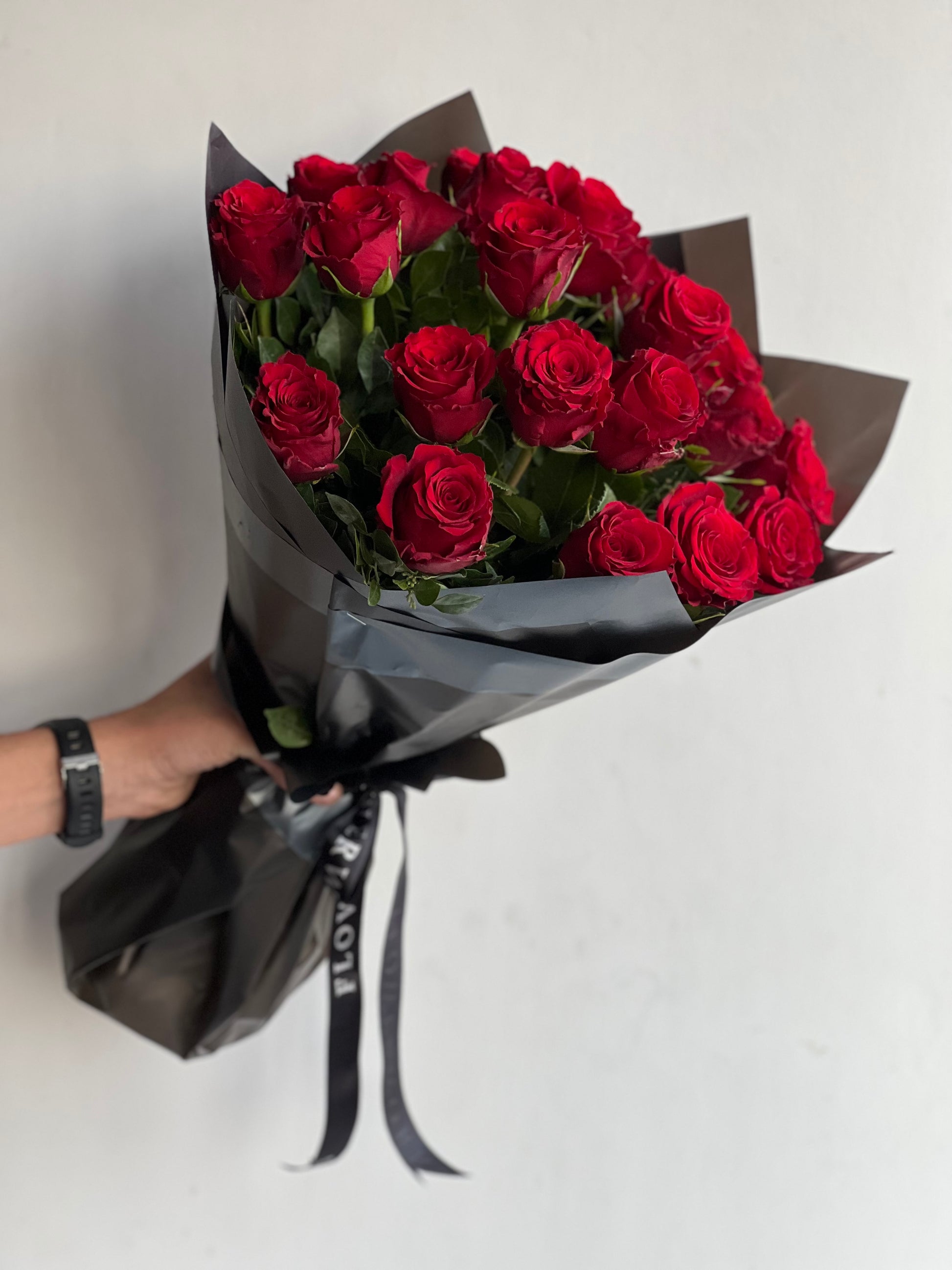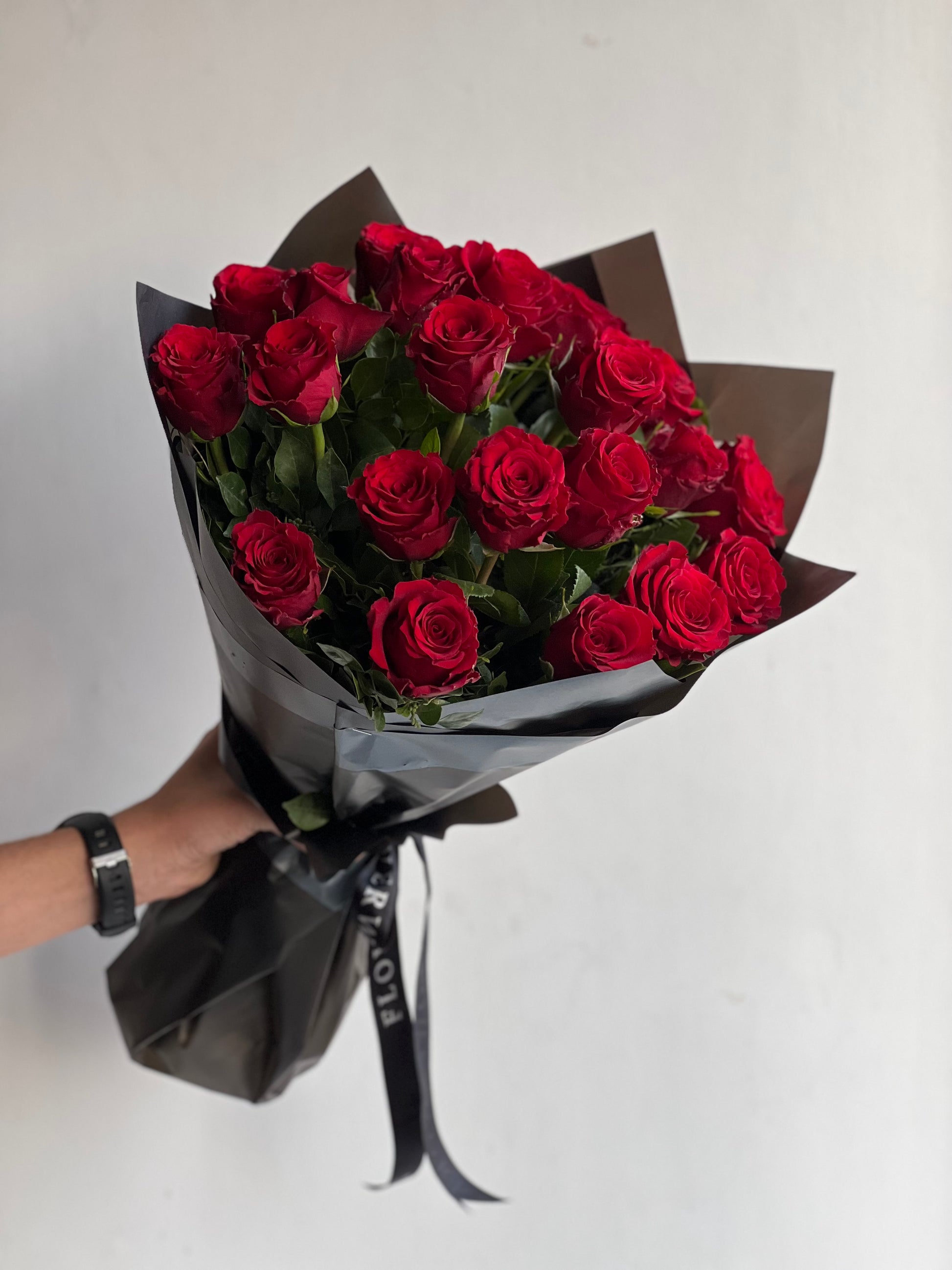 Best selling red rose bunch featuring 20 long stems and lush foliage. Simple and stunning.