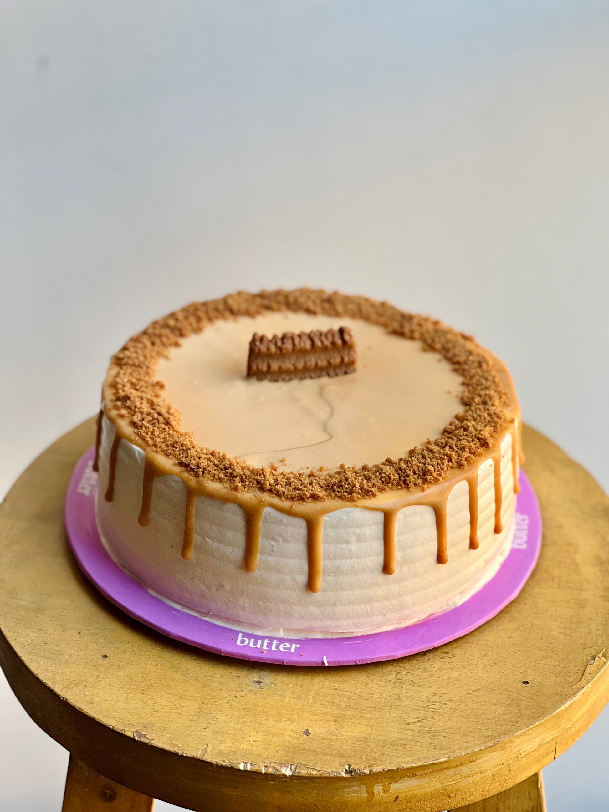 This cake features layers of moist, velvety cake infused with a rich, caramelized biscuit flavor. The cake is topped with a creamy, spiced buttercream frosting and adorned with crunchy, golden cookie crumbs. This show-stopping cake is a must-try for anyone with a sweet tooth.