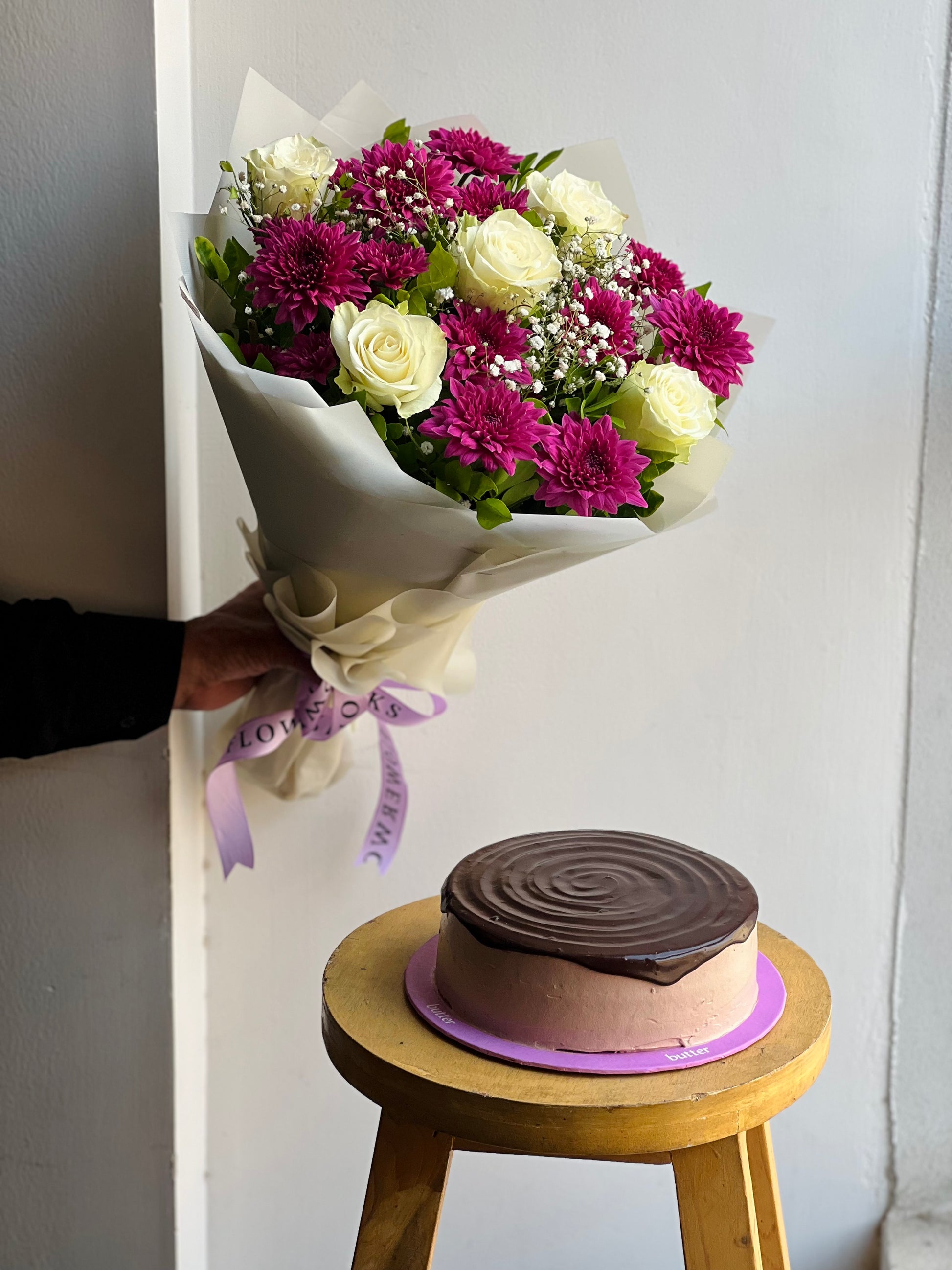 This cake combines a rich chocolate sponge with a chocolate fudge icing. Perfect for satisfying sweet cravings.