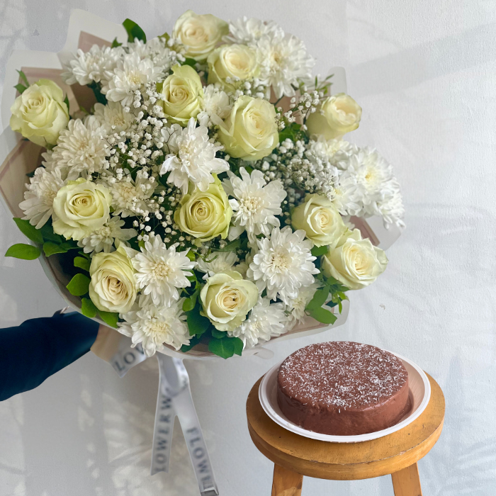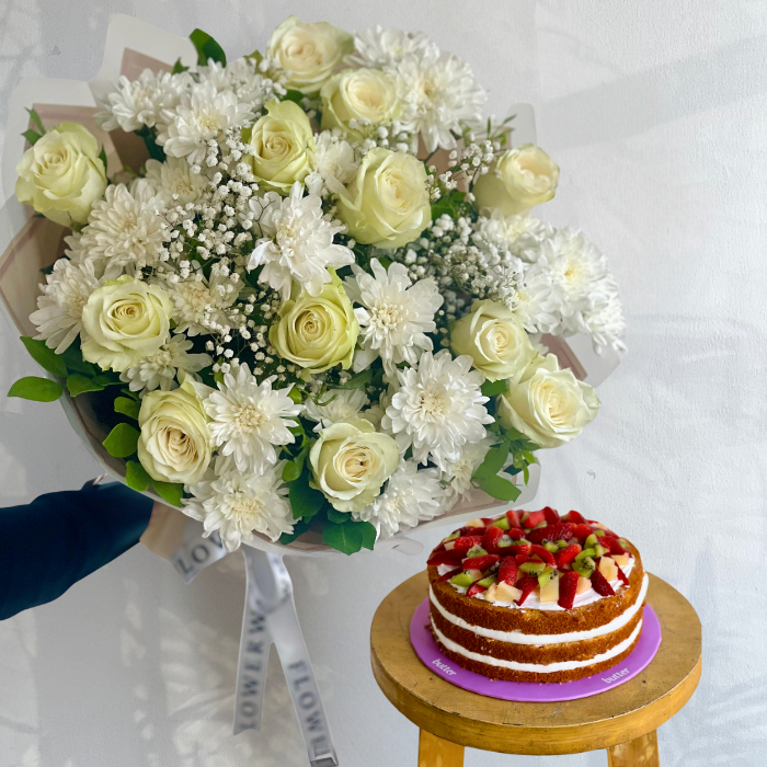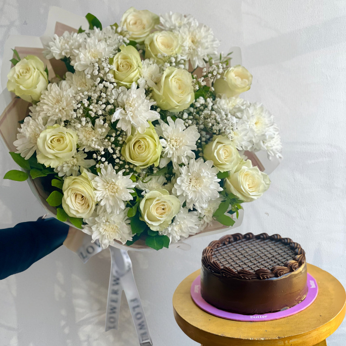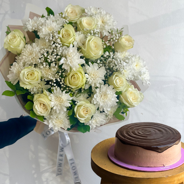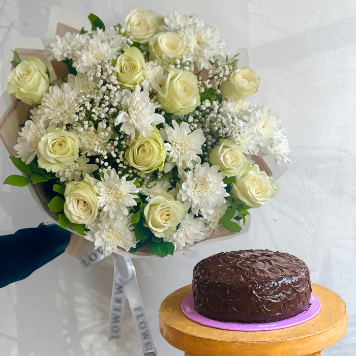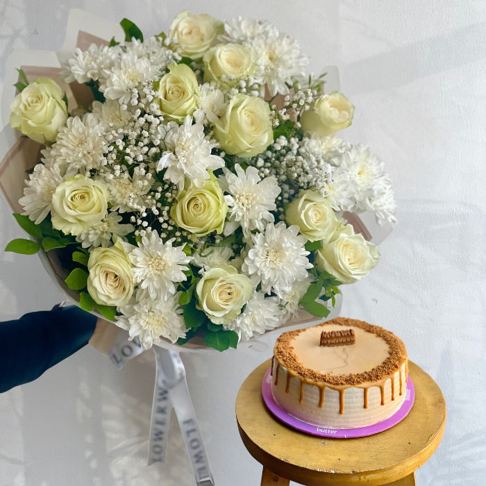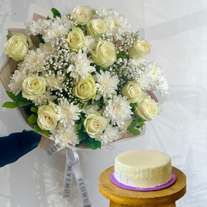 Pure Love bouquet and a Cake of your choice 🫶🏼