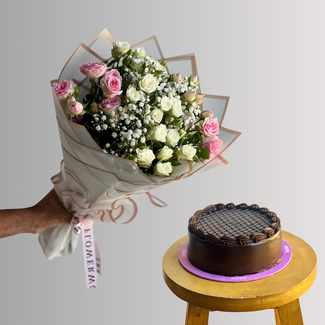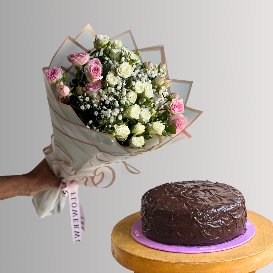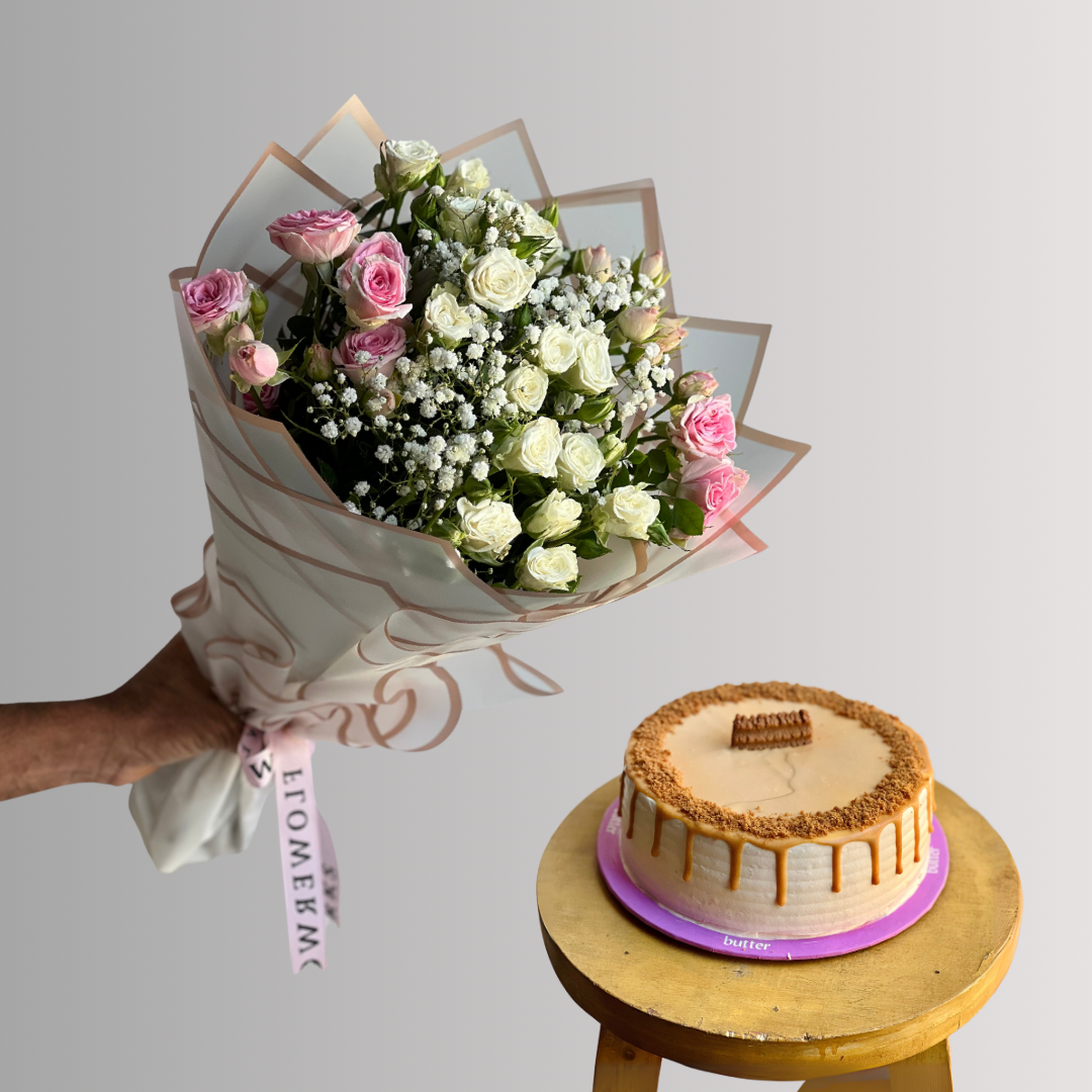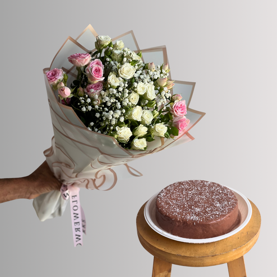 Cute little bouquet and cake gift for your loved ones