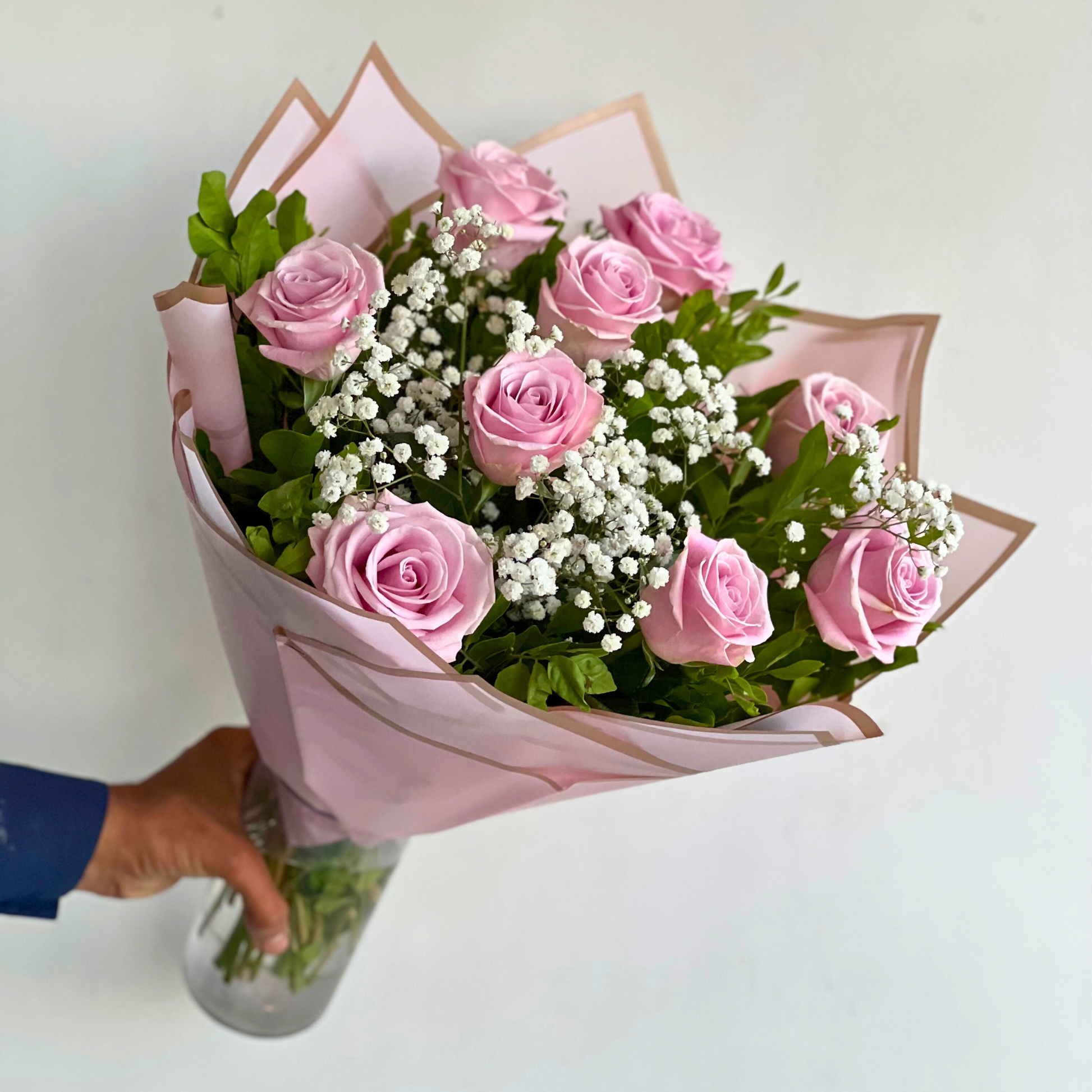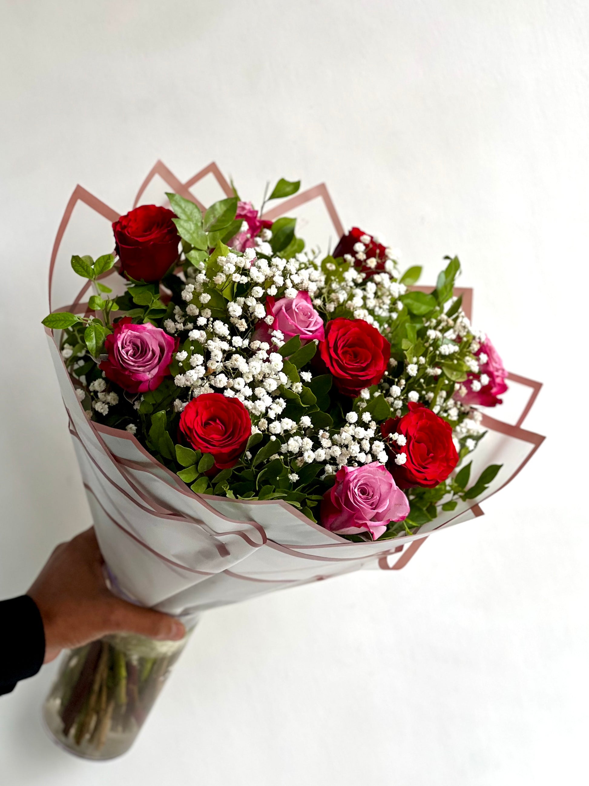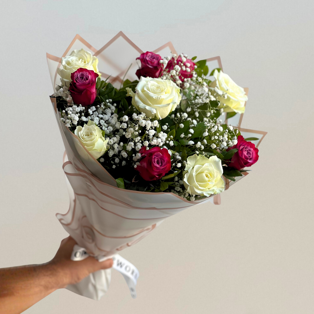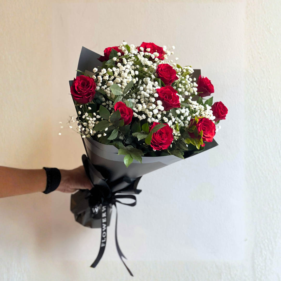 This exquisite bouquet features your choice of stunning roses, accented with delicate baby's breath and lush foliage. It embodies elegance, grace, and the timeless charm of roses. Create unforgettable moments with our 10 on 10 bouquet today.