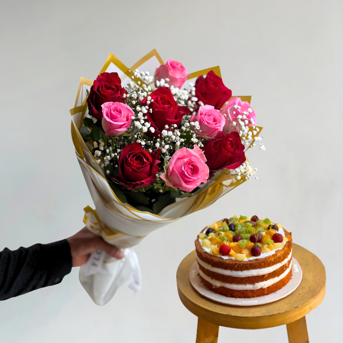 10 on 10 bouquet with a cake of your choice 🫶🏼
