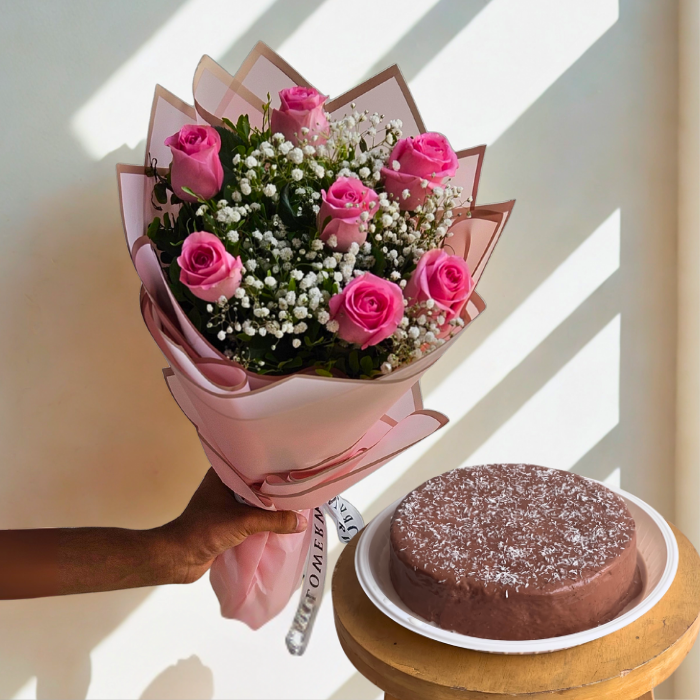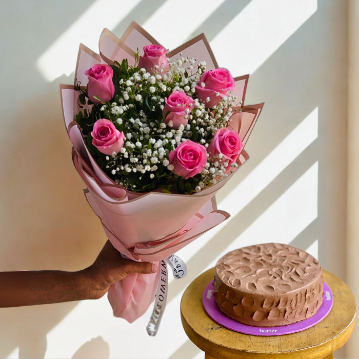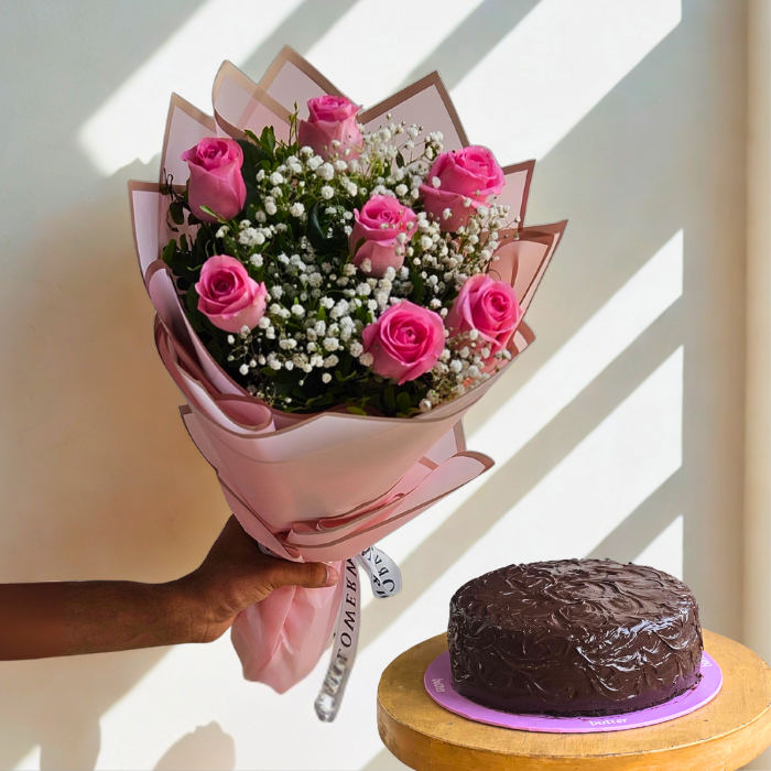 Starburst Bouquet (of 7 Rose) and a cake of your choice