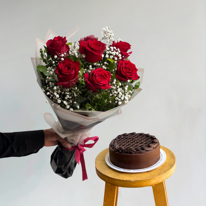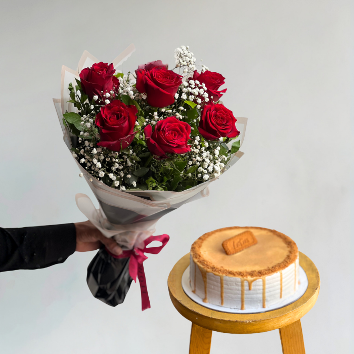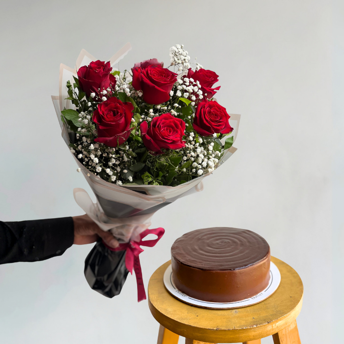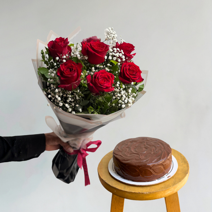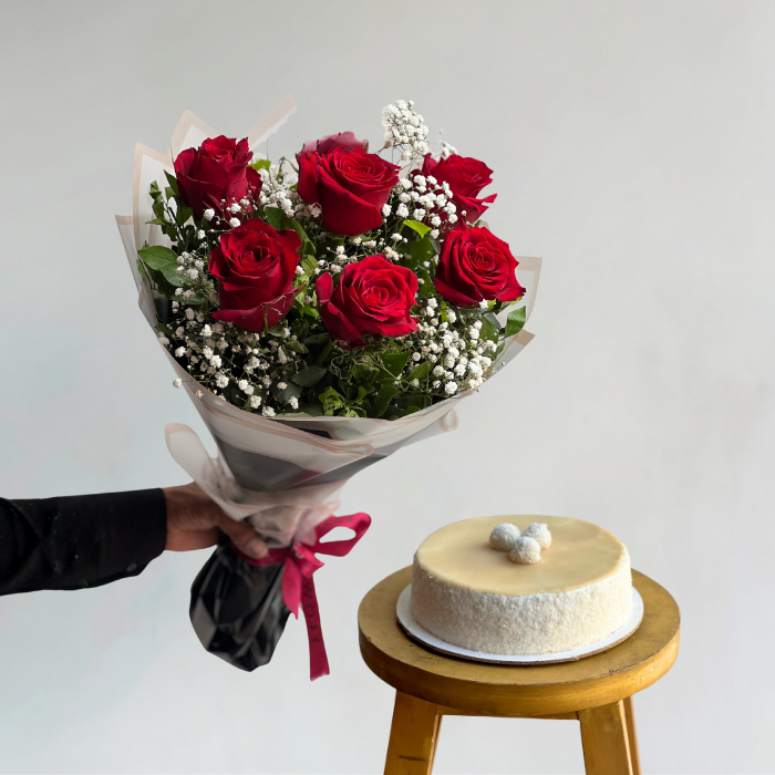 Bouquet with a cake of your choice. All cakes are approximately 2.5 lb except small milk cake which is approximately 1.5 lb